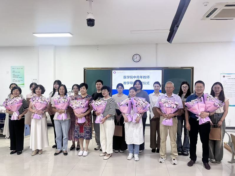 在全场教职工的见证下,大会进入庄重而温馨的导师结对仪式环节。本次结对以 “传帮带、共成长” 为宗旨,遴选了教学经验丰富、科研能力突出、资深教授为导师,与青年教师及新入职教师结成帮扶对子。仪式现场,青年教师向导师献花,表达对导师的敬意与学习的决心;导师则为青年教师送上精心准备的本子礼盒,传递着对后辈的期许与关怀。蔡金娟副院长在仪式中指出,导师结对不仅是知识与技能的传承,更是治学精神的延续。希望导师能够在教学方法、科研思路、职业规划等方面为青年教师提供全方位指导;青年教师要珍惜学习机会,主动请教、积极实践,在传承中创新,在成长中担当,尽快成长为学院发展的中坚力量。结对仪式的举行,不仅搭建了青年教师快速成长的 “阶梯”,更构建起医学院师资队伍梯队建设的长效机制。