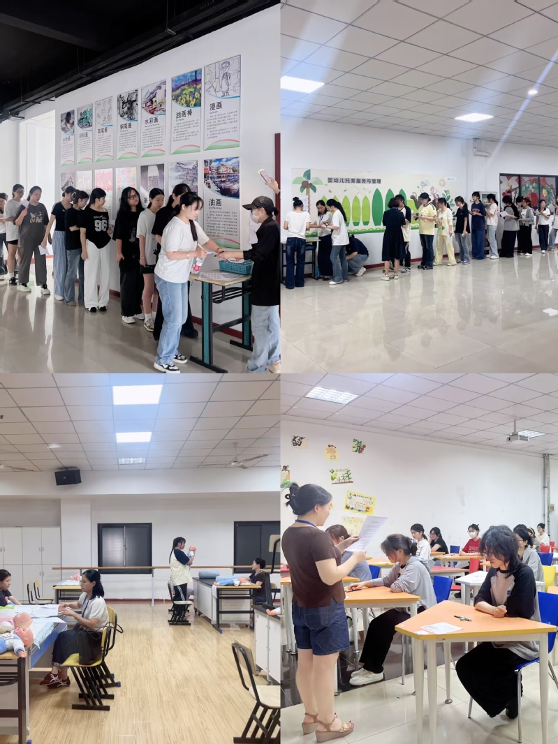 为进一步拓宽学生就业渠道,提升学生就业竞争力能力,医学院分别于2025年5月、9月举办了两期婴幼儿发展引导员(育婴员四级)鉴定工作。婴幼儿托育服务与管理专业2022级、2023级共115名学生报名参加。鉴定内容分为理论知识和实操展示两部分,涉及婴幼儿生活照料、日常生活保健与护理的基础知识及意外伤害防治等内容。