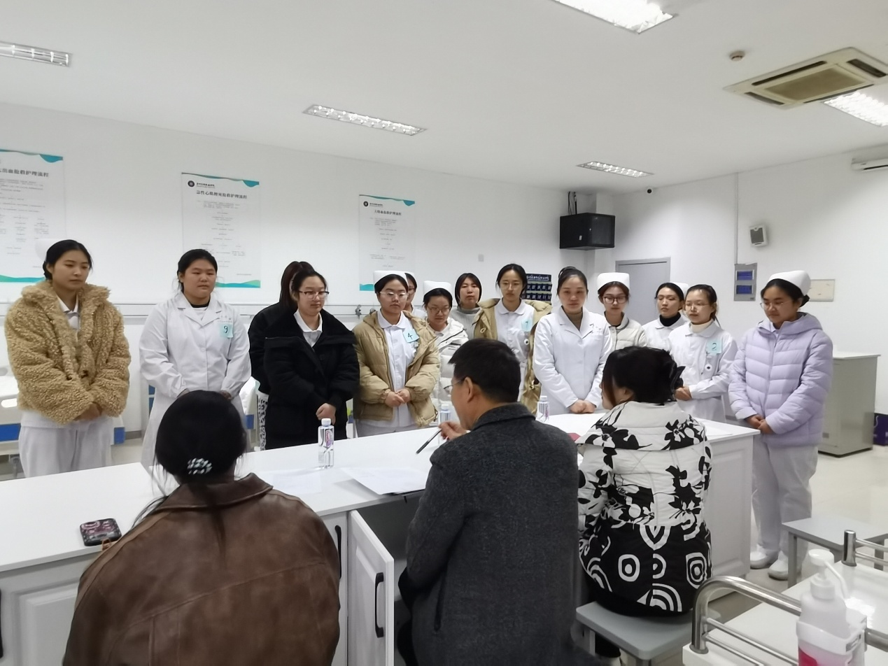 经过近一个半小时的紧张比拼,12位选手全部完成了决赛项目的考核。在所有选手比赛结束后,大赛组委会组织了集中的点评环节。各位评委老师从不同维度对选手们的整体表现进行了全面而深入的剖析与总结。於学良副院长从赛事组织、技能标准对接及选手综合素养提升等方面进行了宏观指导;王亚兰、陈顺娟、徐盼盼等评委老师则分别从操作流程的规范性、照护过程中的人文关怀体现、与“老人”沟通的有效性、突发事件处理的合理性以及细节把握等多个具体方面,对选手们的表现进行了细致点评,既肯定了选手们在比赛中展现出的亮点与进步,也中肯地指出了存在的不足和改进方向,使在场选手和观摩学生受益匪浅。