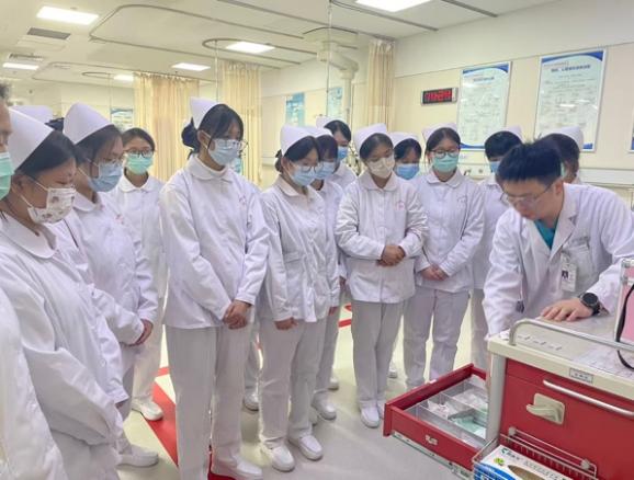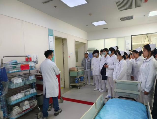 “护理工作不仅是技术的传递,更是情感的沟通,希望同学们通过这次实习,感受护理岗位的责任与价值。” 带教老师何老师的话语为新生们开启了此次认知之旅的序幕。在带教老师的分组带领下,新生们先后走进内科病房、外科病房、急诊科、儿科及手术室等核心科室。在内科病房,护士李老师耐心讲解如何与老年患者进行有效沟通;在急诊科,紧张有序的工作节奏让新生们印象深刻。带教老师介绍了急诊分诊的 “三区四级” 原则,并分享了应对急诊患者家属焦虑情绪的沟通技巧等。