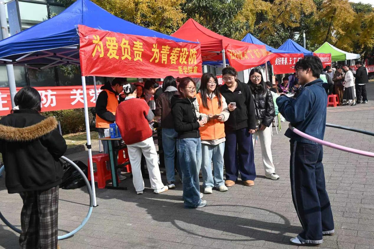 现场同时设立了科普宣传展板与咨询台,通过发放宣传资料、耐心解答疑问、讲解检测知识等方式,向过往师生系统普及艾滋病的传播途径、科学预防方法、反歧视理念以及“早检测、早诊断、早治疗”的重要性。志愿者们强调,在尚无有效疫苗的情况下,掌握科学知识、采取有效防护措施、消除偏见与歧视,是防控艾滋病的关键。此次活动以寓教于乐、动静结合的方式,打破了传统科普的单向传播模式,有效提升了健康宣教的趣味性与参与度。师生们在轻松愉快的氛围中,不仅加深了对艾滋病防治知识的了解,更强化了“每个人是自己健康第一责任人”的意识,深刻认识到保持积极运动习惯和健康生活方式对于维护个人及公共卫生安全的重要意义。医学院始终致力于发挥医学专业优势,服务公众健康。本次世界艾滋病日活动的成功举办,是学院创新健康教育形式、积极履行社会责任的又一次生动实践。未来,学院将继续探索多元化的健康促进模式,为提升全民健康素养、共建健康校园与社会贡献力量。