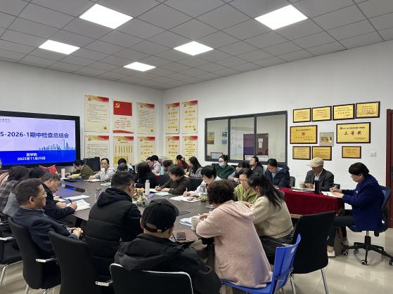 11月25日中午,医学院在学院会议室召开本学期期中教学检查总结会议。学院党政领导、各系部教研室主任、学院督导、学工办主任参会,会议由蔡金娟副院长主持。