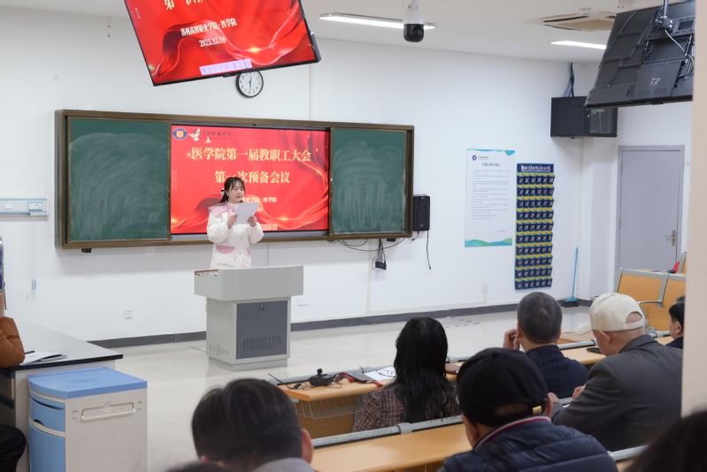 大会预备会议阶段由学院党总支副书记、副院长赵洪鹏同志主持。会议听取了学院工会主席王亚兰同志所作的《医学院第一届教职工大会第一次会议筹备工作情况报告》,审议并通过了大会日程及议程安排、大会主席团成员及秘书长名单,为大会顺利召开奠定了坚实基础。