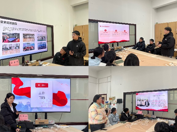 会议按议程有序进行,学生会各部门部长依次进行年度工作汇报。汇报围绕核心工作数据、重点活动开展、工作方法与创新、存在问题与改进方向等内容展开,并通过PPT、音频、视频等多种形式进行展示。各部门负责人系统梳理了在活动组织、数据成果、志愿服务、实践育人等方面的工作进展。