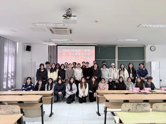 2026年3月12日,医学院在12-508教室隆重召开新学期学生组织全员大会,本次大会以“凝聚青春力量,启航崭新征程”为主题。医学院分团委书记邵雪娇老师,分团委委员张驰老师、朱嘉丽老师、王雨晨老师、刘蔚老师以及全体学生会、社团成员共同参会。大会旨在进一步凝聚学生会力量、强化思想引领、明确工作方向,引导青年学生以信仰为灯塔,以团结为基石,在成长道路上坚定前行、勇担使命。