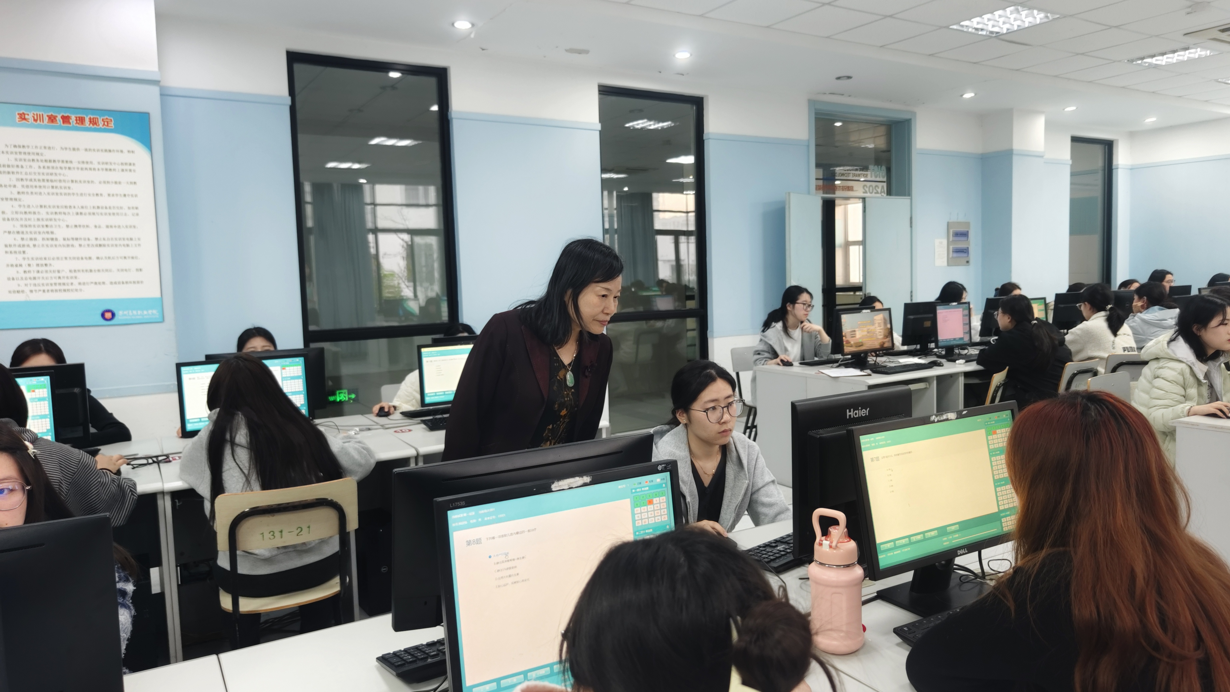 为扎实推进护理专业复习备考工作,帮助学生熟悉护士执业资格考试机考流程、锤炼应试能力,近日,苏州高博职业学院医学院组织护理专业全体备考学生,在学院机房开展全真模拟考试,为保障机考顺利进行,特邀请人民卫生出版社贾老师提供技术支持,以“实战化”演练为护考冲刺筑牢根基,切实提升备考质效。